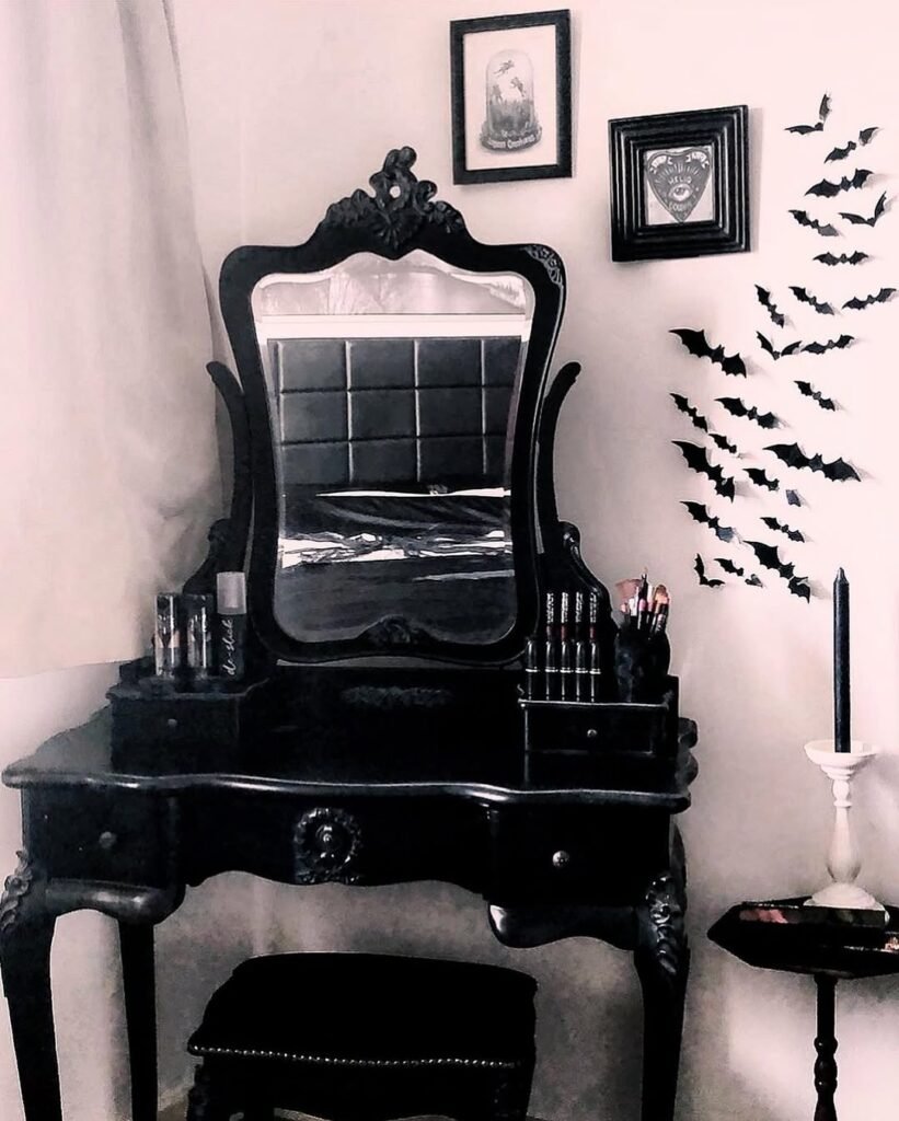 Wall decor adds personality without overwhelming the space. Modern gothic wall decor may include framed artwork, sculptural pieces, or mirrors with dark frames. Keeping wall designs simple allows the decor to feel intentional rather than heavy.